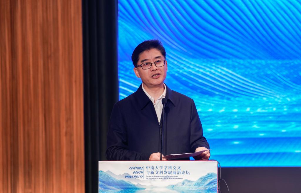 省委教育工委分管日常工作的副书记,省教育厅厅长高山出席论坛并致辞。他指出,技术能解决效率问题,但解决不了价值问题;算法可以推送信息,但产生不了打动人心的情感和文化。在社会大变革的时代,文科在价值引领、情感凝聚与文化传承方面的功能愈发不可替代。他高度肯定了中南大学作为全省高等教育排头兵的示范作用,并相信本次论坛将为新文科发展注入新的思路与活力。