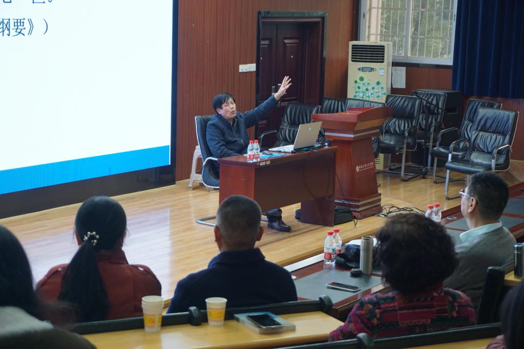 2025年12月10日下午,全国优秀教师、湖南省屈原学会副会长、湖南科技大学吴广平教授应邀为我院师生开展题为“辞祖与辞圣——论屈原《离骚》的元典价值与范式意义”的学术讲座,本次讲座在中南大学文法楼222举行,由人文学院白寅教授主持,罗军飞书记、龙丹副院长、晏杰雄教授出席,百余名本硕博学子到场聆听学习。