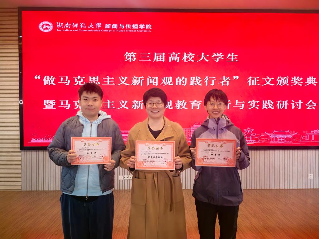 2025年12月24日上午,第三届湖南省高校大学生“做马克思主义新闻观的践行者”征文颁奖典礼暨马克思主义新闻观教育创新与实践研讨会在湖南师范大学新闻与传播学院书山论坛举办。