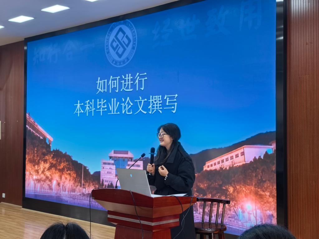 在经验分享环节,学院邀请了两位往届优秀毕业生进行交流。范欣媛同学以自身写作历程为例,按时间顺序拆解了论文从选题到定稿的全流程,强调了时间管理、资料梳理、学术规范以及高效与导师互动的重要性。张依雯同学则侧重研究方法与写作实务,分享了文献分析、文本研读的具体方法,并传授了学术语言锤炼、时间规划及答辩准备等方面的实用技巧。