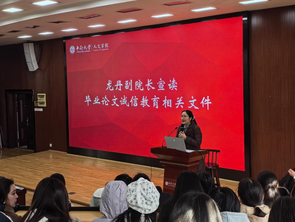 会议伊始,龙丹副院长宣读了《中南大学本科毕业论文作假处理办法》,要求全体同学以严肃认真的态度对待,恪守学术道德,坚守诚信底线,高质量完成学术生涯的“最后一课”。